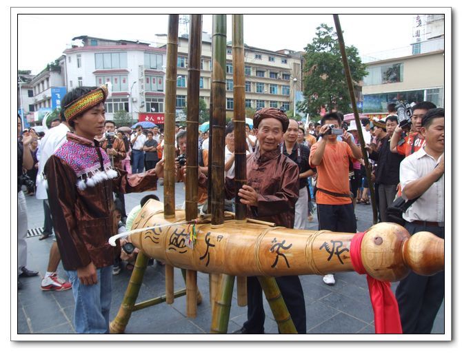 2008年,為慶祝北京奧運(yùn)會(huì)開(kāi)幕,苗族著名蘆笙師傅梁炳光特制了一把高達(dá)10余米,重達(dá)240余公斤的蘆笙。這把號(hào)稱(chēng)當(dāng)今蘆笙的王中王、世界蘆笙之最的蘆笙從備料到制作完成,梁師傅足足用了一個(gè)多月。這把蘆笙在北京奧運(yùn)會(huì)期間曾在融水民族廣場(chǎng)展示,萬(wàn)人矚目。