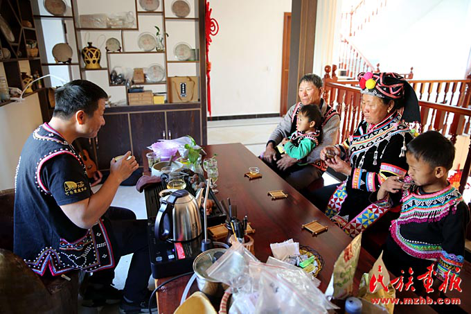 一家人坐在6米高的客廳里看著高清電視節(jié)目,偶爾圍坐在一起品味著來(lái)自景邁山的古樹(shù)茶,張俊波的臉上滿是幸福。他說(shuō):“拉祜族是快樂(lè)民族,我們喜歡用歌聲和舞蹈表達(dá)快樂(lè)的心情。這種發(fā)自內(nèi)心、難以言表的快樂(lè)是黨和國(guó)家長(zhǎng)期關(guān)懷我們西南邊疆少數(shù)民族才能實(shí)現(xiàn)的?!?/p>