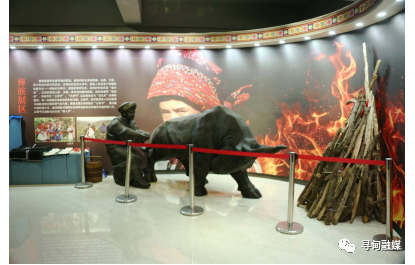 2.彝族展區(qū): 彝族是最早定居尋甸的民族,縣境內(nèi)的支系有黑彝、白彝、干彝,距今有3000多年的歷史。在漫長的歷史長河中,彝族人民創(chuàng)造了璀璨的地域文化——神秘的古彝文,原始的祭祀禮儀,別致的傳統(tǒng)民居“垛木房”,古老的彝族山歌、古歌、彝族舞蹈,獨(dú)特的婚俗“拖媳婦”,傳統(tǒng)節(jié)日“立秋節(jié)”、“火把節(jié)”以及被美譽(yù)為“活化石”的彝族服飾,每一項都蘊(yùn)含著極深的文化內(nèi)涵;火把節(jié),象征著彝族人民的激情與戰(zhàn)勝自然災(zāi)害的勇氣和力量;彝族戈濮支系的獨(dú)創(chuàng)“立秋節(jié)”,通過盛大的秋場斗牛、夜間情歌對唱等形式將豐收的歡樂和喜悅傳遞四面八方。